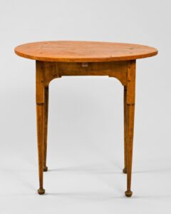Crafted around 1750, “Molly’s Table” is barely two feet high. It has been passed down through generations of owners. It suffered two broken legs. The top has been cut down by six inches. The table has been mended, cherished, ignored, and used as a TV stand. It was featured in 2017 exhibition, “Four Centuries of Furniture in Portsmouth.”