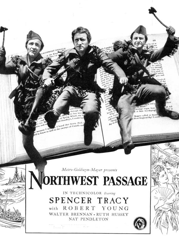 Filmed just before America entered World War II, Northwest Passage is a thinly disguised recruitment film. Drafted into Rogers’ elite force, often compared to the modern Green Berets, Langdon and Hunk overcome impossible odds, defeat the French, and return safely home, Imbued with patriotism. Stopping back in Portsmouth in the final scene of the film, Rogers bravely returns to the battlefront, a symbol of the indomitable American spirit.