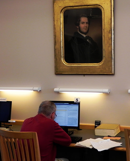Most prominent is James T. Fields (1817-1881), who hangs just opposite the microfilm machines. Raised in the South End, this entrepreneurial genius moved to Boston at age 14. There he became a partner at Ticknor & Fields. There he published books by Whittier, Emerson, Thoreau, Stowe, Holmes, Hawthorne, Dickens, Thackery, Longfellow, and more. This painting is our best image of the young writer and editor who would later own and operate the Atlantic Monthly. After Fields’ death in 1881, his wife Annie, author Sarah Orne Jewett, and Celia Thaxter employed mediums, without success, to talk to him beyond the grave.