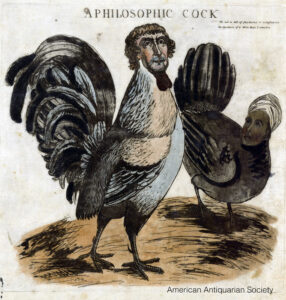 While researching that story, I bumped into this political cartoon from the early 1800s. It depicts Thomas Jefferson as a preening rooster and his enslaved African servant Sally Hemmings as a hen. We now believe Jefferson fathered up to six children with Hemmings, who was pregnant at age 16 when she returned from living in Paris with Jefferson after his term as ambassador to France. Four of their six children – Beverly, Harriet, Madison and Eston – survived to adulthood and lived at Monticello. DNA studies have since proven the once controversial theory that Jefferson fathered most or all of Hemming’s children while she remained enslaved.