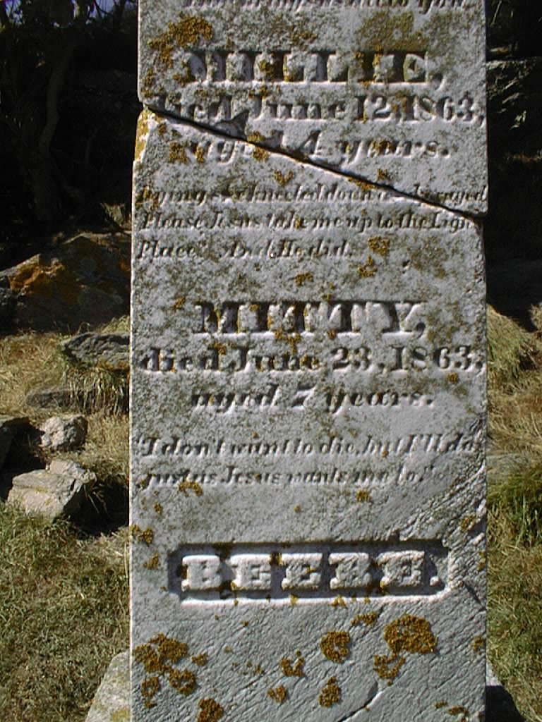 It was the height of the Civil War when young Mitty grew old enough to attend school on the mainland. She was ferried in to Kittery, Maine to join her classmates, no longer isolated among the fishing families of Star. Mitty attended classes for the first time in a school not run by her father or mother. There she contracted scarlet fever. The disease spread quickly to her younger siblings back on Star Island. All three girls died within a month of each other early in the Another version says the girls died of diphtheria. summer of 1863.