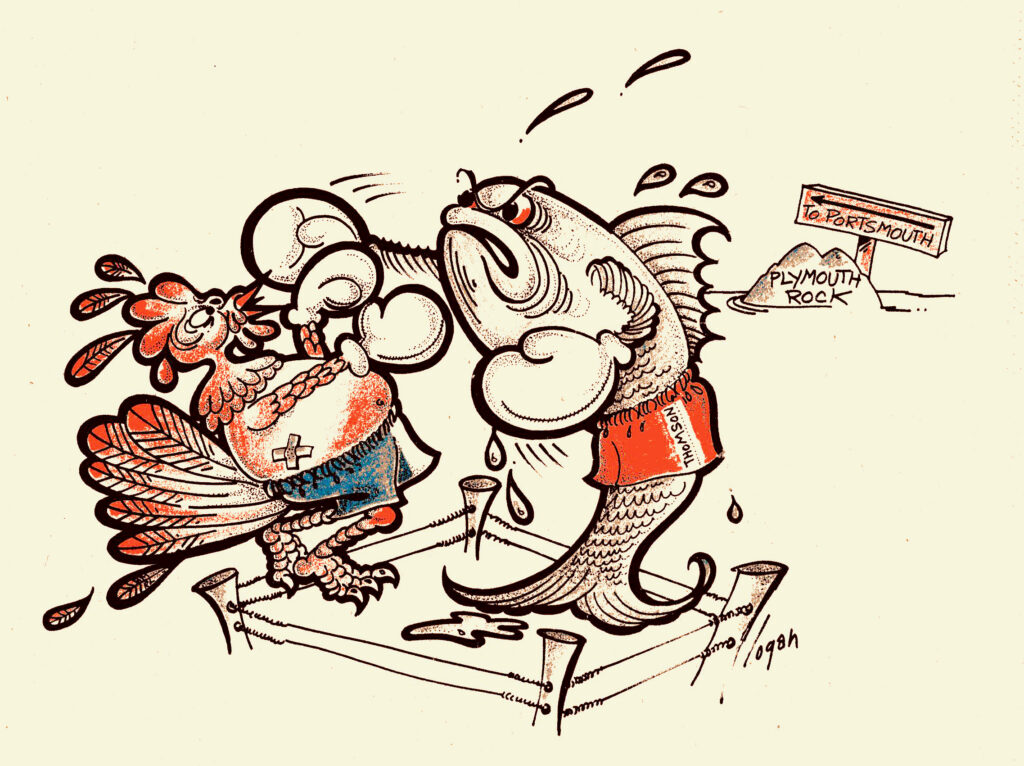 And we’ll keep the pressure on until the governor down there issues a formal apology for ignoring us at Plymouth, and at Bunker Hill, for that matter, and for stealing Daniel Webster. Put more fish on the menu this Thanksgiving, you turkeys, or we will keep writing these cod pieces.