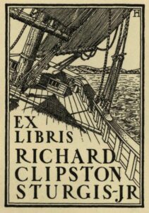 Sturgis, like so many of us, was drawn to the Seacoast, both for scenery, history and architecture. He was among the Boston artists and intellectuals who summered in Portsmouth’s Little Harbor area. He eventually purchased and redesigned the 1700-era Martine Cottage. The booklet above is from the library of his son, Richard Clipston Sturgis Jr., also an architect, very likely designed by his sister, Dorothy Sturgis Harding.