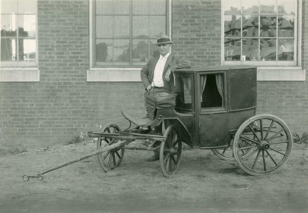 The historic vehicle, wherever it came from, was later given by UNH trustees to the Henry Ford Museum in Dearborn, Michigan. A quick phone call indicates that the carriage is currently in storage at the Benson Ford Research Center. It was received there in January 1936 from Dean Frederick W. Taylor of Durham.