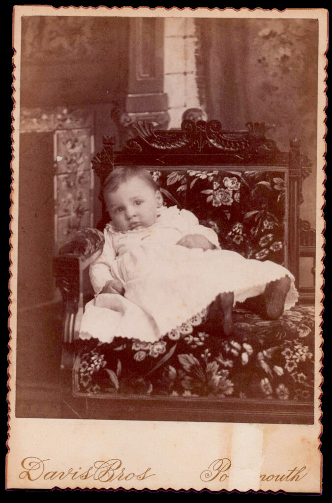 We know this portrait was taken by one of the Davis Brothers, either at 15 Pleasant St. or 5 Congress St. in downtown Portsmouth. In 1861, Lewis Davis, originally from Ripley, Maine, partnered with his brother Charles in a company that preserved local history for decades to come. Their “carte de visite” prints backed on heavy paper, became the Facebook of the second half of the 19th century. Affordable, portable, and durable, they could be exchanged like business cards. The Davis Bros. also cashed in on the stereoscope craze in which two similar images, when viewed in a hand-held device, produced a three-dimensional effect.