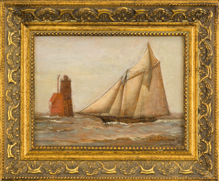 Wasson was a good writer, his friend Fannie Eckstorm noted, because he was a good painter. And he was a good maritime painter, she said, because he knew how to sail and to build boats. Wasson knew what a boat looked like below the water and he was an expert in the design and rigging of small ships. He worked quickly, often completing a painting in a single day. And he was his own best critic. Unhappy with a painting he did for a captain at the Portsmouth Navy Yard, legend says, he placed it on the edge of four chairs, took a running leap, and jumped into the middle of the canvas.
