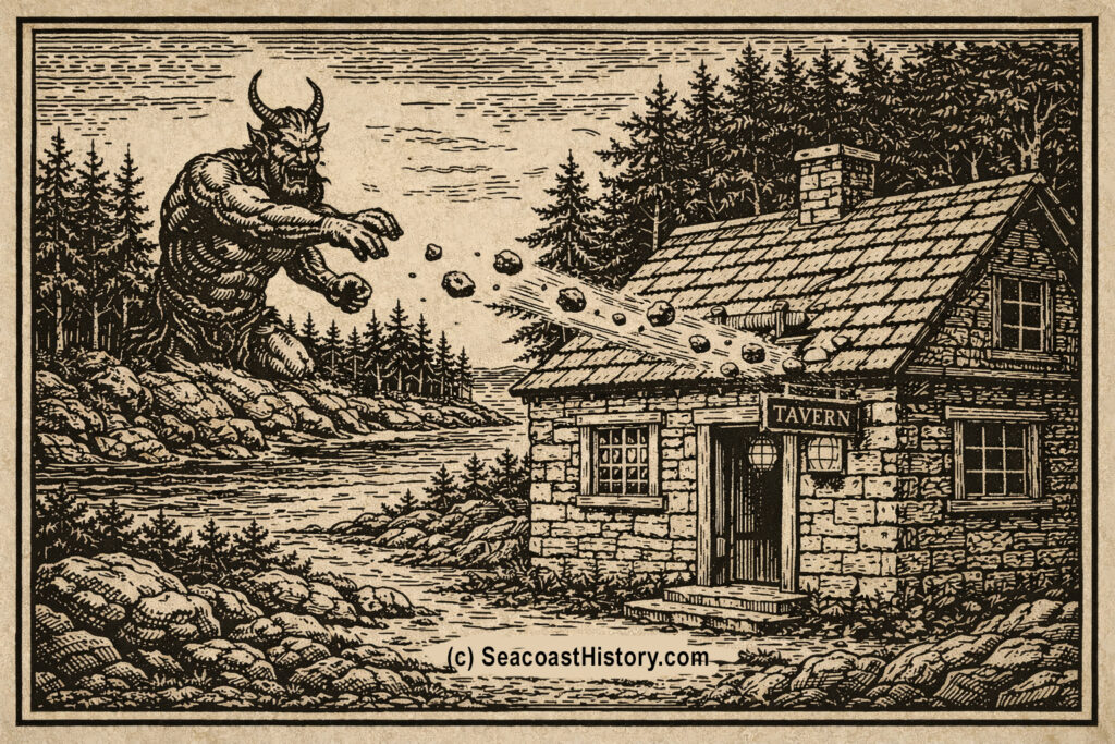 On June 11, 1682, showers of stones were thrown by an invisible hand Upon the house of George Walton at Portsmouth, (Newcastle.) – Where upon the people going out found the gate wrung off the hinges, and stones flying and falling thick about them, and striking of them seemingly with a great force, but really affecting ’em no more than if a soft touch were given them. The glass windows were broken by stones that came not without, but from within; and other instruments were in like manner hurried about. Nine of the stones they took up, whereof some were as hot as if they came out of the fire, and marking them they laid them on the table; but in a little while they found some of them again flying about. The spit was carried up the chimney, and coming down with the point forward, stuck in the back log, from whence one of the company removing it, it was by an invisible hand thrown out at the window. This disturbance continued from day to day; and sometimes a dismal hollow whistling would be heard, and sometimes the trotting and snorting of a horse, but nothing to be seen. The man went up the Great Bay in his boat onto a farm which he had there; but there the stones found him out, and carrying from the house to the boat a stirrup iron the iron came jingling after him through the woods as far as his house; and at last went away and was heard of no more. The anchor leaped overboard several times and stopped the boat. A cheese was taken out of the press, and crumbled all over the floor; a piece of iron stuck into the wall, and a kettle hung thereon. Several cocks of hay, mowed near the house, were taken up and hung upon the trees, and others made into small whisps, and scattered about the house. A man was much hurt by some of the stones. He was a Quaker, and suspected that a woman, who charged him with injustice in detaining some land from her did, by witchcraft, occasion these preternatural occurrences. However, at last they came to an end.” Thus wrote the reliable Cotton Mather, one hundred and sixty-eight years ago. Although he says these things had an end, yet there have been some reliable witnesses to events of a similar nature on the Pest Island, in the vicinity of Newcastle, nearly a century after. When there were but two men on this island, things were mysteriously moved about the pest house, and unaccountable noises heard. Later days have shown as strange things produced by mesmeric powers, since table moving has become an every day occurrence.