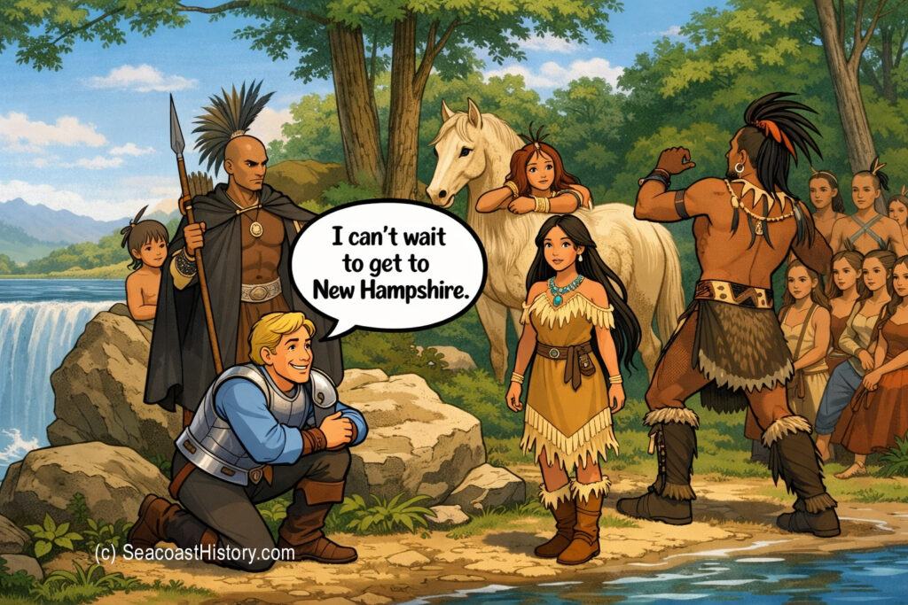 Smith died in 1631, just as Strawberry Bank was fully established as NH’s first permanent settlement at what is now Portsmouth. If you believe Smith’s own account of Jamestown, Virginia, we owe much of our own history to Pocahontas. The Indigenous teen, legend says, prevented her father from crushing Smith’s head with a rock in 1607.